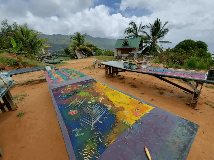 איי סיישל זה לא רק בטן גב..יש גם אומנות מיוחדת תוך שימוש בכוח השמש הטרופית ובצמחים אנדמיים באי מאהה, סיישל.